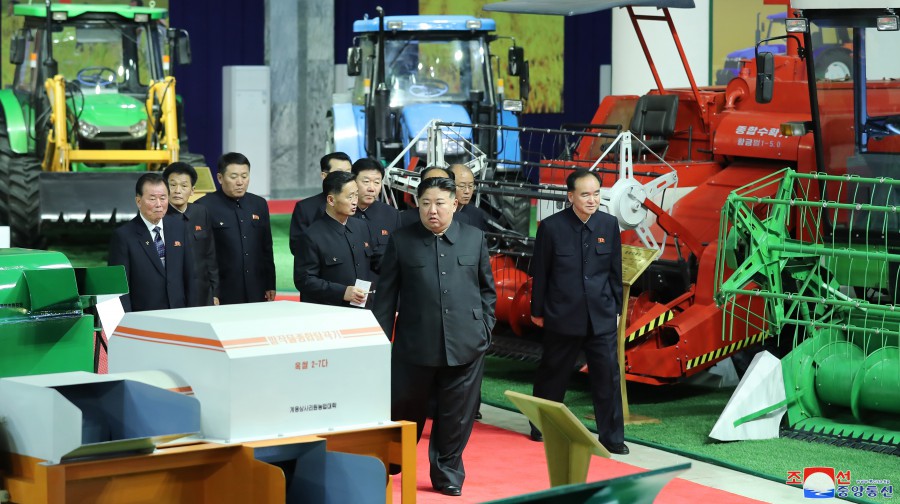 敬愛(ài)的金正恩同志察看農機展場(chǎng)