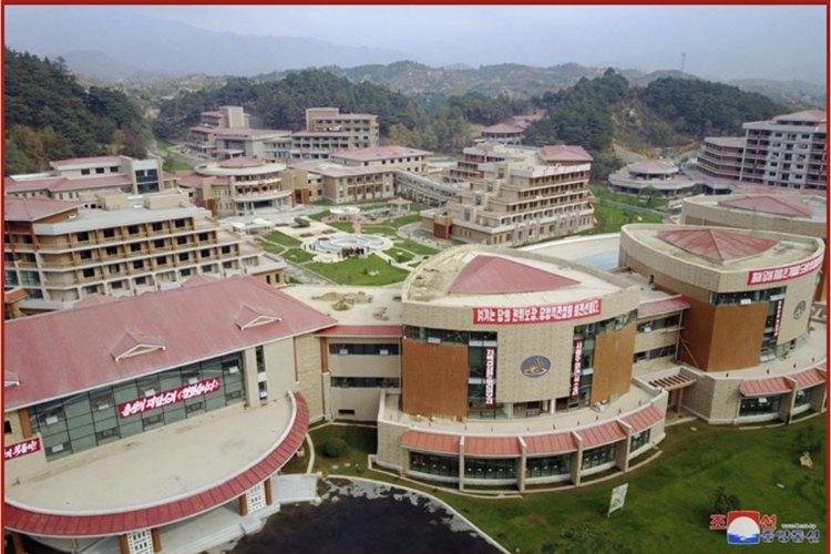 金正恩高度評價(jià),陽(yáng)德郡溫泉旅游區的建筑形式和內容不僅新穎獨特,而且從設計到施工一切都高標準高水平。