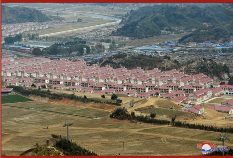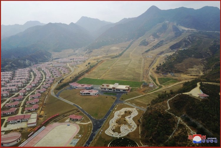 金正恩登上瞭望臺俯瞰溫泉旅游區內的服務(wù)樓房時(shí)高興地說(shuō),非常特色、個(gè)個(gè)都毫無(wú)遜色、服務(wù)單位職工住房也像一座高級別墅、溫泉旅游區周邊村莊都變成村莊建設的樣板,這就是我們朝鮮式建設。