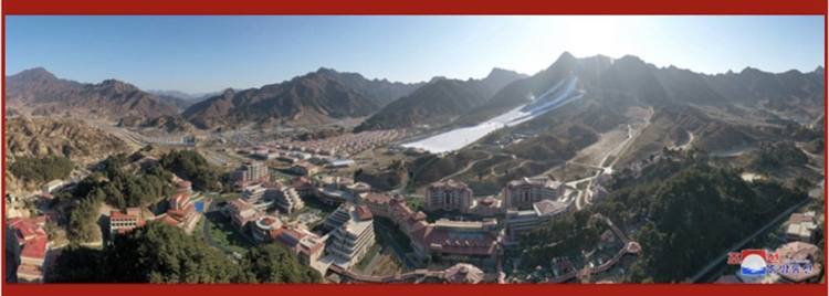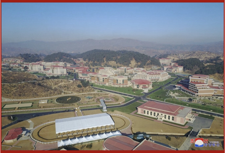 金正恩俯瞰休養地全景時(shí)說(shuō),今天終于實(shí)現了金日成同志和金正日同志曾為在自古以溫泉出了名的陽(yáng)德地區建設文化休養地而送給人民費盡心思的懇切愿望。