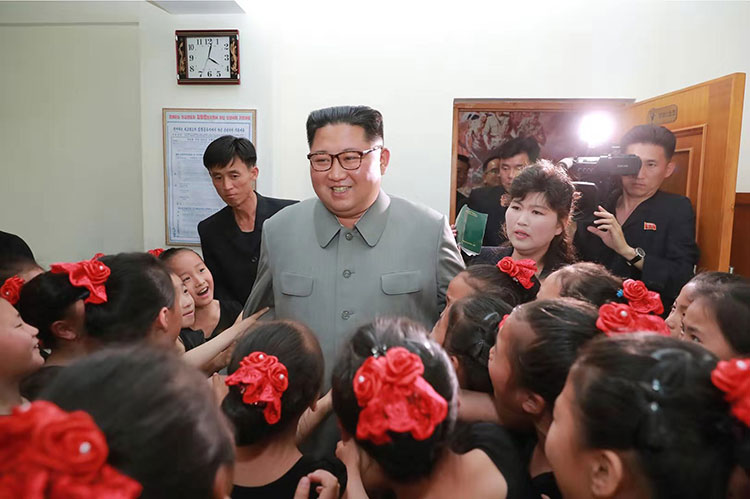 金正恩同“學(xué)習的千里路”學(xué)生少年宮小組員在一起 2019年5月