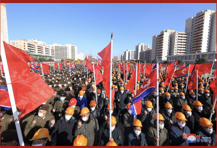 金正恩結束講話(huà)時(shí),場(chǎng)內激情蕩漾,歡呼聲再次震撼天地。全體人員對金正恩同志與新的主體100年代一道在這片疆土上繼續書(shū)寫(xiě)凝聚金日成同志和金正日同志高貴生涯的人民群眾第一主義神圣歷史表達了感恩之心。