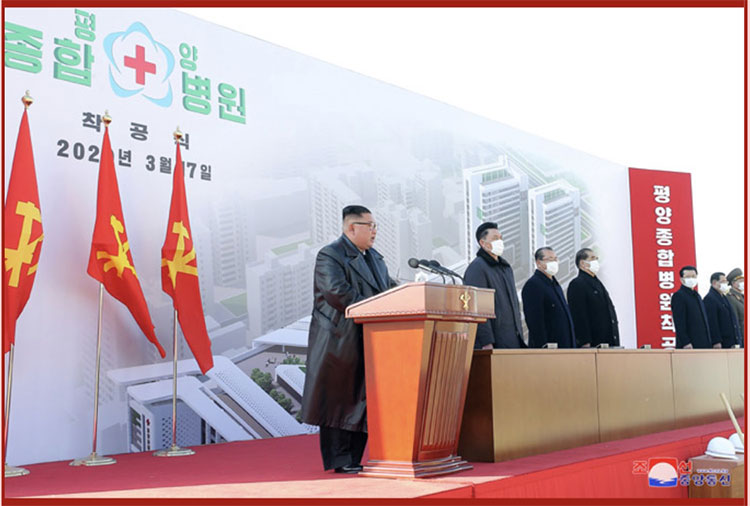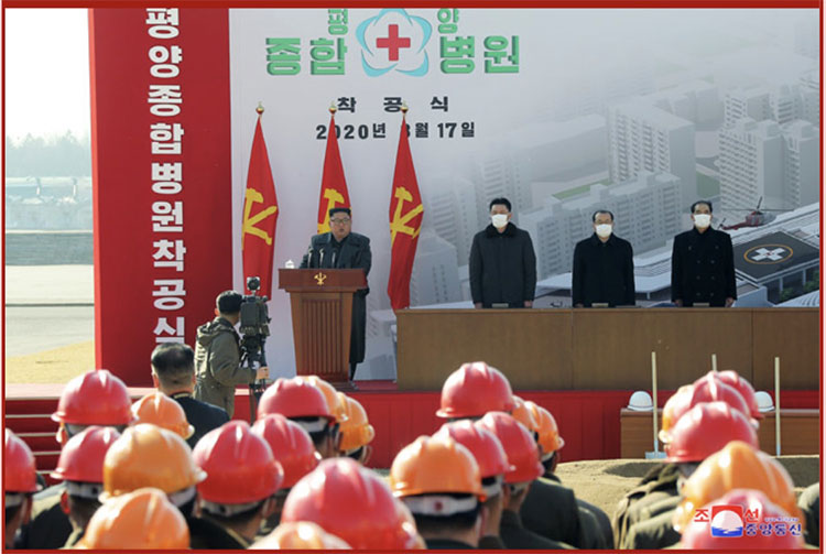 朝鮮勞動(dòng)黨振興保健衛生部門(mén)是維護并發(fā)揚光大我們朝鮮式社會(huì )主義形象的政治問(wèn)題、不管條件和環(huán)境如何也要最優(yōu)先投入全國力量的重大事業(yè),也是我們黨的堅定不移的意志。我相信,因為有我們黨這樣的意志和你們一直對黨的召喚忠心耿耿、激發(fā)著(zhù)愛(ài)國熱情、獻身奮斗的精神,平壤綜合醫院建設工程將大大鼓勵投入正面突破戰的全體人民并圓滿(mǎn)得到完工。
