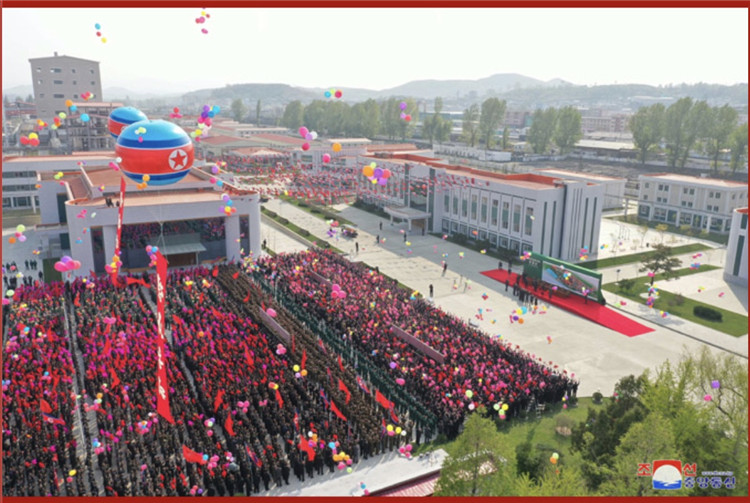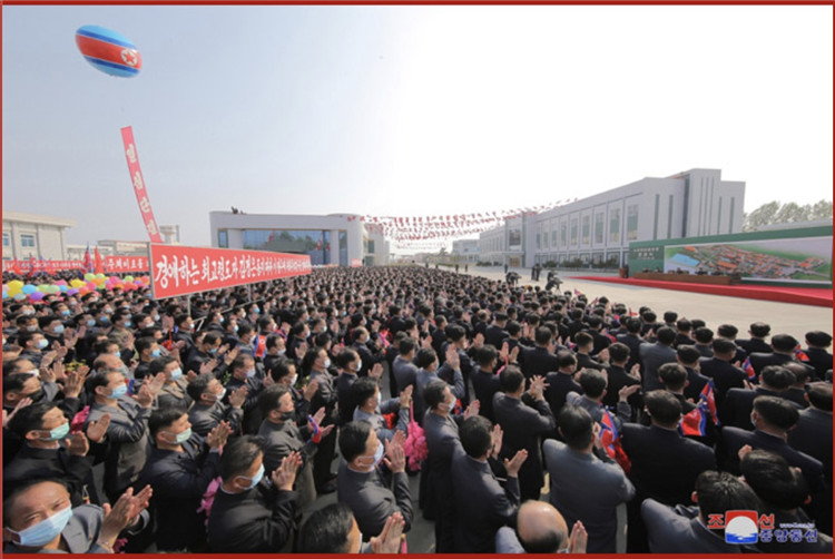 偉大的正面突破戰思想、自力富強自力繁榮的創(chuàng )造物——順川磷肥廠(chǎng)竣工典禮隆重舉行 金正恩同志出席竣工典禮 親自剪彩
