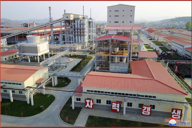 偉大的勞動(dòng)黨時(shí)代引以自豪的創(chuàng )造物、富強祖國建設又一個(gè)萬(wàn)年財富——順川磷肥廠(chǎng)是化學(xué)工業(yè)部門(mén)的樣板工廠(chǎng)、標準工廠(chǎng),切實(shí)體現主體化現代化要求,生產(chǎn)、建筑物、生態(tài)環(huán)境保護也完美無(wú)缺。