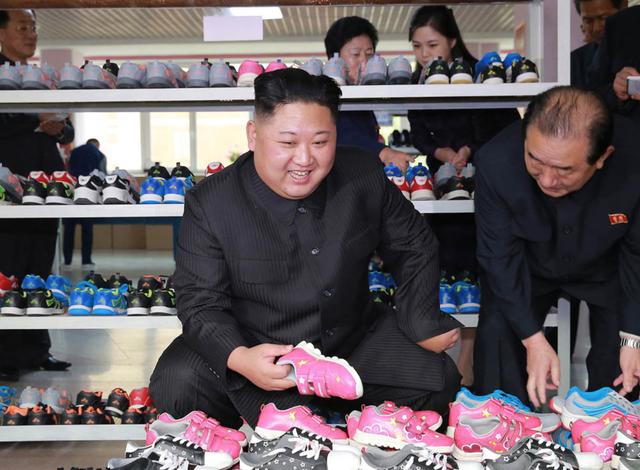 (圖說(shuō):金正恩視察改建后的柳原制鞋廠(chǎng)。2017年10月)