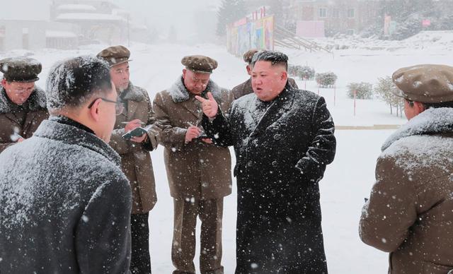 (圖說(shuō):金正恩視察元山葛麻海岸旅游區建設工地。2018年5月)