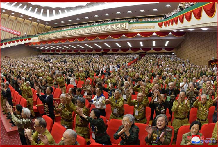 全體與會(huì )者向推崇參戰老兵為創(chuàng )造偉大歷史的寶貴導師、打下自主強國基礎的主人翁,一向對他們恩重如山的金正恩同志致以最大的光榮和最熱烈的感謝。