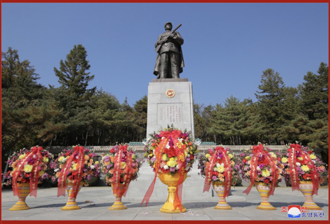 以金正恩同志名義的花籃敬獻在毛岸英同志之墓前。