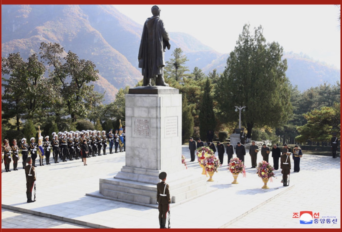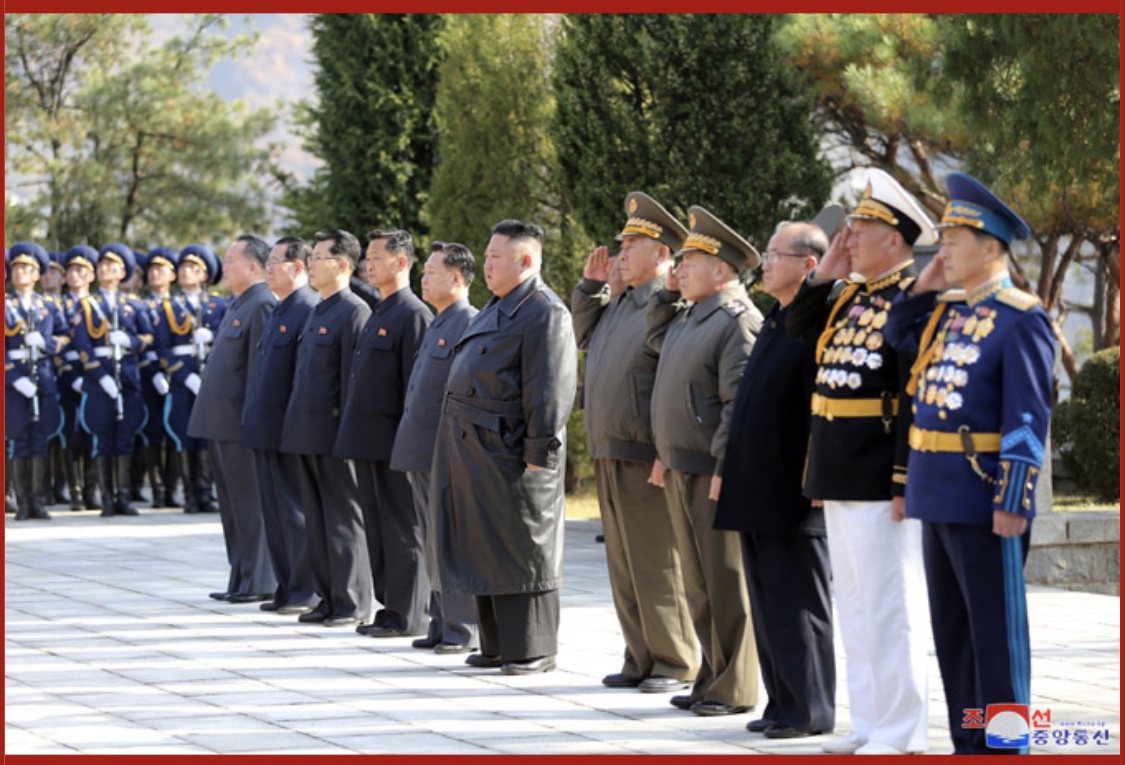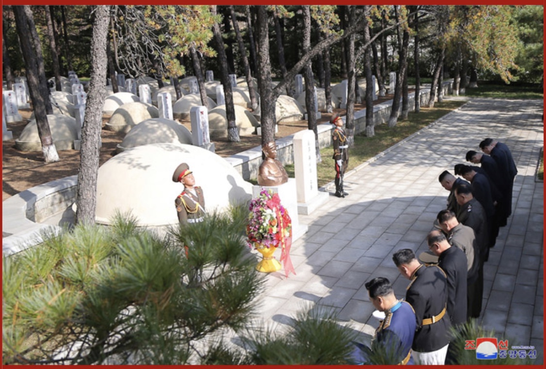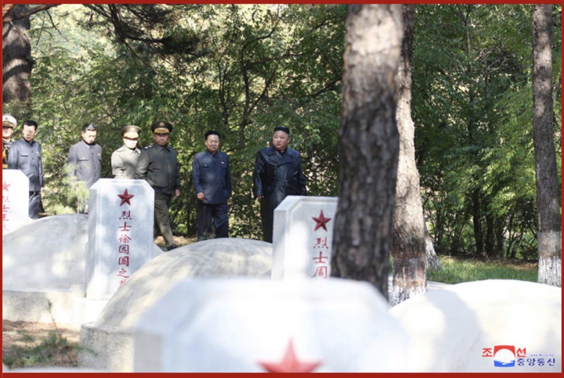 金正恩同志同陪同的黨、國家和武裝力量領(lǐng)導干部一起參觀(guān)了中國人民志愿軍烈士墓。