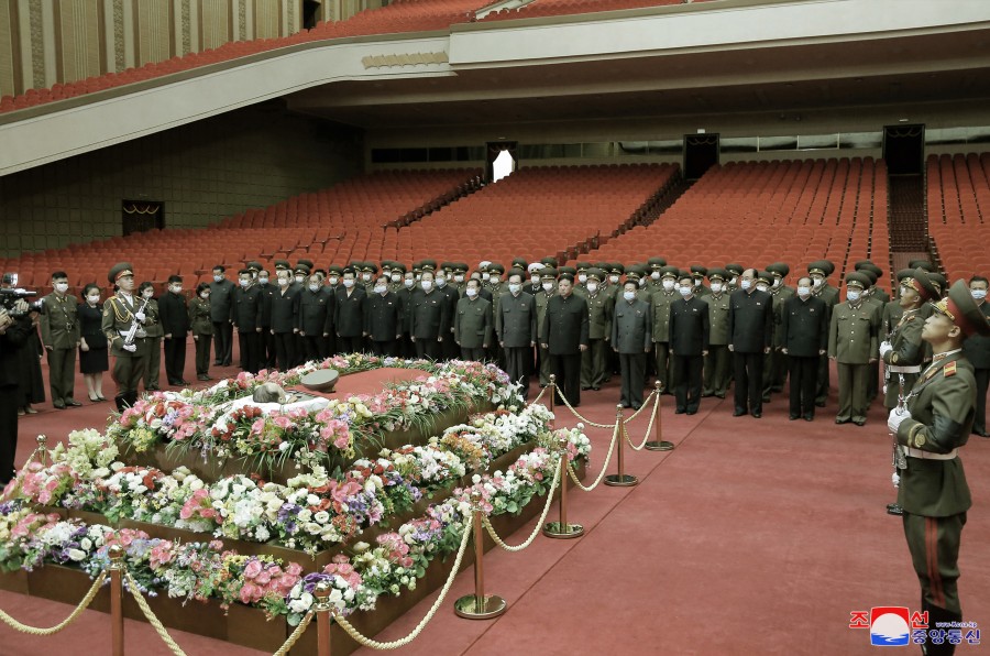朝鮮勞動(dòng)黨中央委員會(huì )、黨中央軍事委員會(huì )、朝鮮民主主義人民共和國最高人民會(huì )議常任委員會(huì )和內閣名義的花圈分別被敬獻在故人靈柩前。