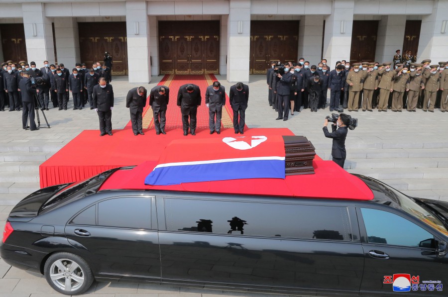 朝鮮勞動(dòng)黨中央政治局常委崔龍海、趙甬元、金德訓、樸正天、李炳哲,黨中央政治局委員和候補委員、黨中央軍事委員會(huì )委員、國防省指揮成員等國家治喪委員會(huì )委員和故人家屬參加儀式。