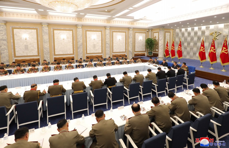 會(huì )議在黨中央軍事委員會(huì )副委員長(cháng)們的指導下,對補充確定朝鮮人民軍各前線(xiàn)部隊作戰任務(wù)并提升作戰執行能力的軍事對策進(jìn)行深入研討,進(jìn)行修改作戰計劃的工作,將其結果提交到朝鮮勞動(dòng)黨中央軍事委員會(huì )。