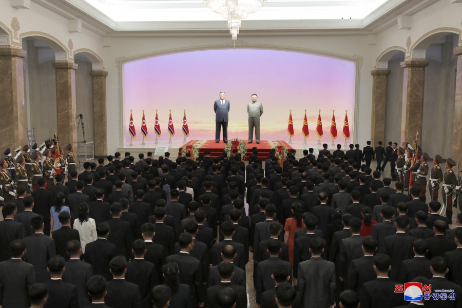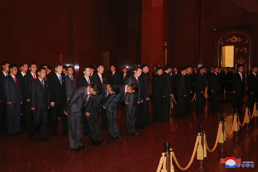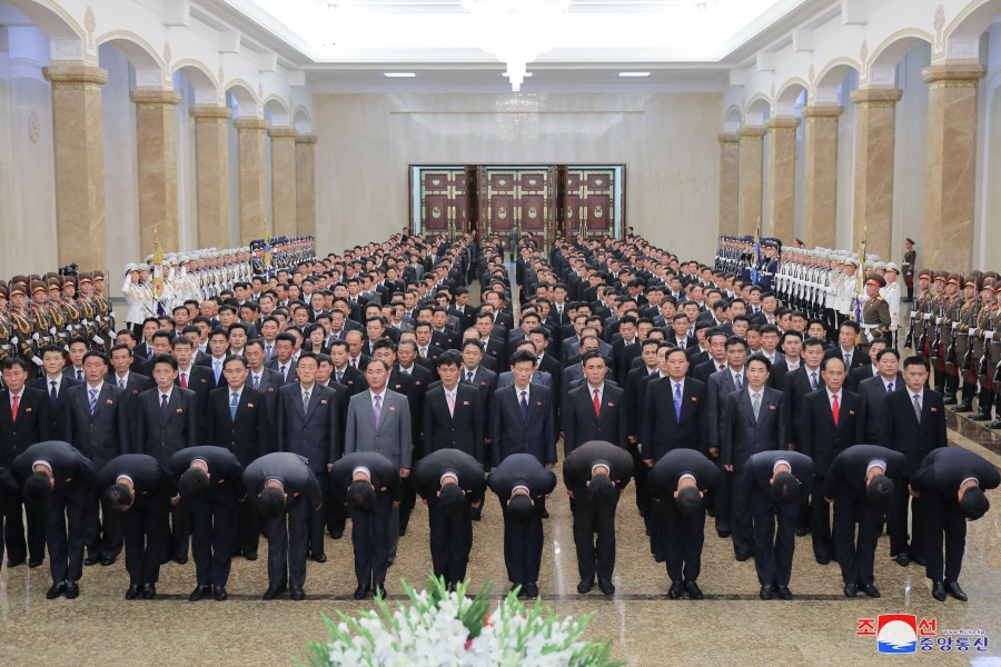 朝中社平壤7月8日電 值此民族最大的追悼日之際,朝鮮勞動(dòng)黨總書(shū)記、朝鮮民主主義人民共和國國務(wù)委員長(cháng)金正恩同志同朝鮮勞動(dòng)黨各級黨委員會(huì )組織部黨的生活指導部門(mén)工作人員特別講習會(huì )參加者一起參謁了錦繡山太陽(yáng)宮。