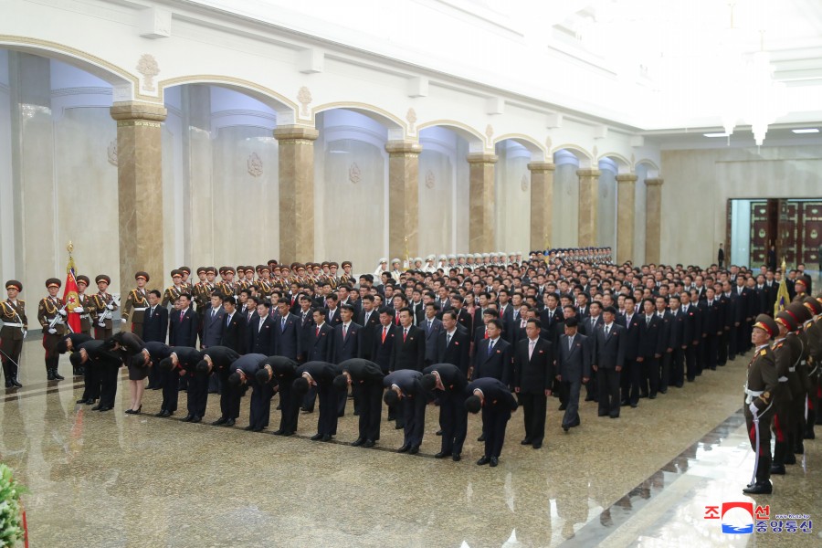 在主體最高圣地激烈蕩漾著(zhù)對創(chuàng )造并發(fā)揚光大百戰百勝的朝鮮勞動(dòng)黨光榮歷史的偉大領(lǐng)袖金日成同志和偉大領(lǐng)導者金正日同志的懇切思念和無(wú)盡敬慕之情。