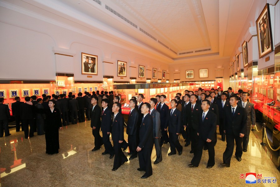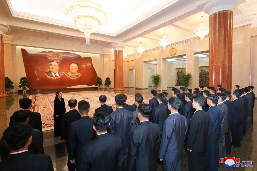參加壯大發(fā)展偉大的我們黨戰斗歷程中成為重大歷史契機的特別講習會(huì ),接受敬愛(ài)的金正恩同志的卓越思想理論睿智耀眼的新時(shí)代黨的建設綱領(lǐng)的全體參加者懷著(zhù)特殊榮譽(yù)和莫大激情,肅穆莊嚴地步入了錦繡山太陽(yáng)宮。