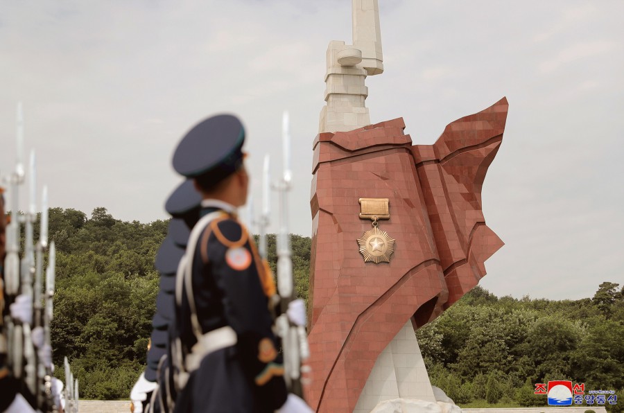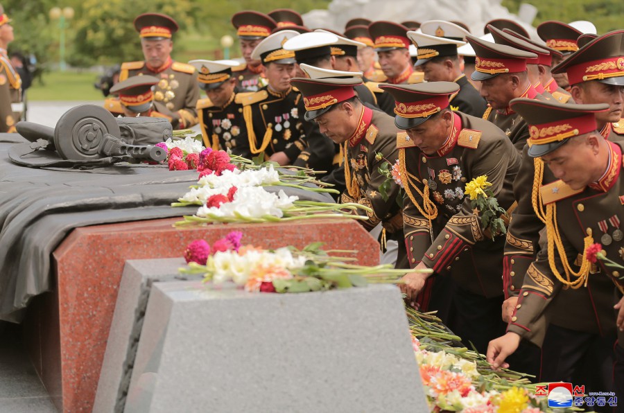 金正恩同志向永葆對黨和領(lǐng)袖的絕對忠誠、滿(mǎn)懷對自己東西的愛(ài)心、堅信自己的力量、堅持對勝利的信心,闖過(guò)嚴峻激烈的戰爭炮火,創(chuàng )造以我們祖國和民族永恒的勝利傳統熠熠生輝的7.27之奇跡的偉大年代烈士們致以崇高敬意。