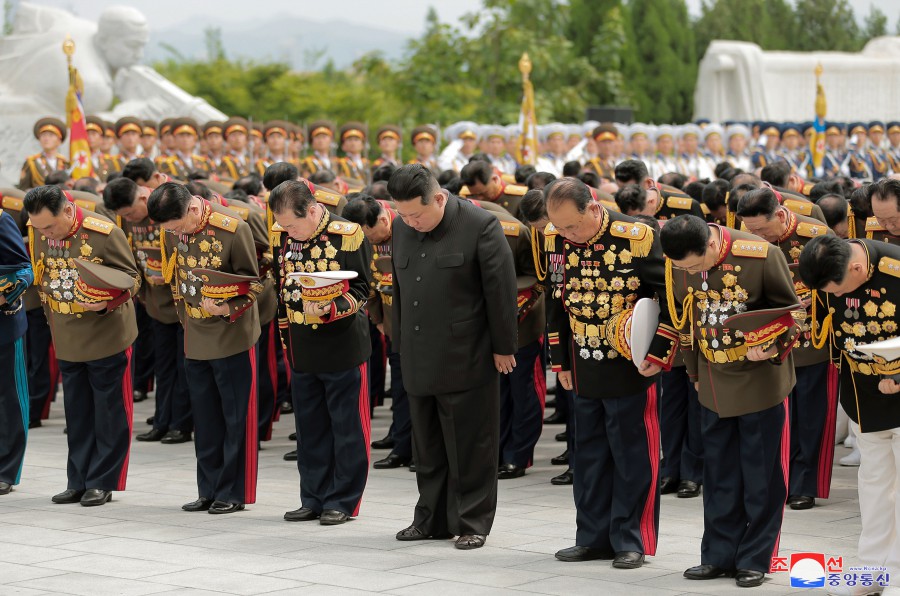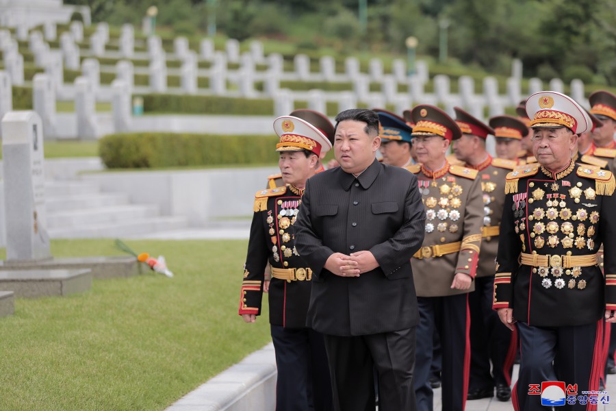 朝中社平壤7月28日電 值此偉大的祖國解放戰爭勝利69周年之際,朝鮮勞動(dòng)黨總書(shū)記、朝鮮民主主義人民共和國國務(wù)委員長(cháng)金正恩同志7月27日前往祖國解放戰爭烈士陵園,向人民軍烈士表示敬意。