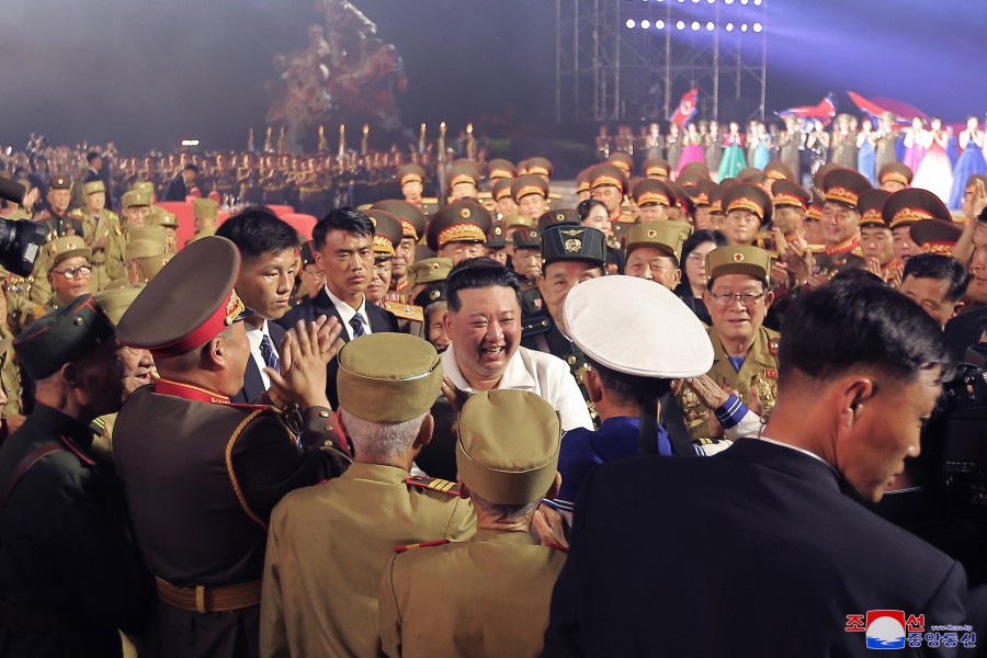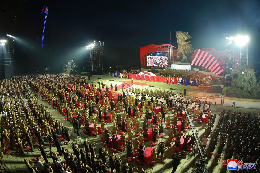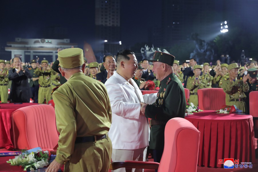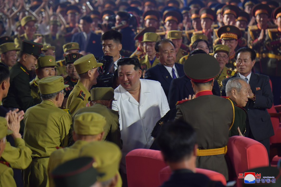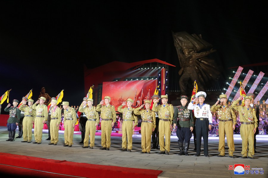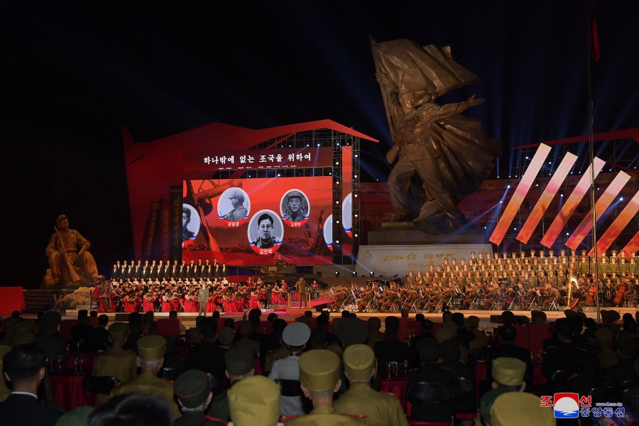 紀念活動(dòng)場(chǎng)上洋溢著(zhù)擁戴把1950年代時(shí)代精神銘刻在我國人民和人民軍官兵心中,并英明引導共和國的戰勝史化為百戰百勝之歷史源遠流長(cháng)的