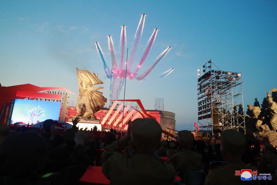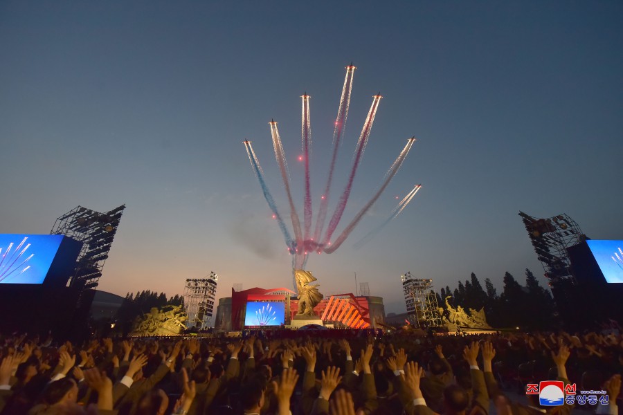 無(wú)數煙花駕著(zhù)要繼承先烈的寶貴靈魂提前爭取朝鮮式社會(huì )主義新勝利的強烈志向和意志強烈沸騰的戰勝贊歌之旋律,陸續騰空綻放,更加堅定了依靠偉大思想的力量、團結的力量勇往直前的信念道路上有一切勝利和光榮這一真諦。