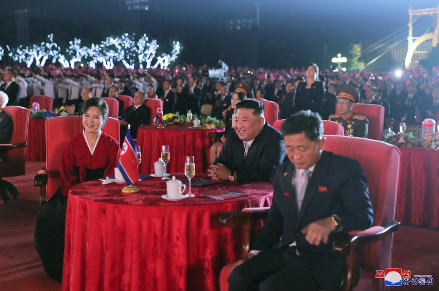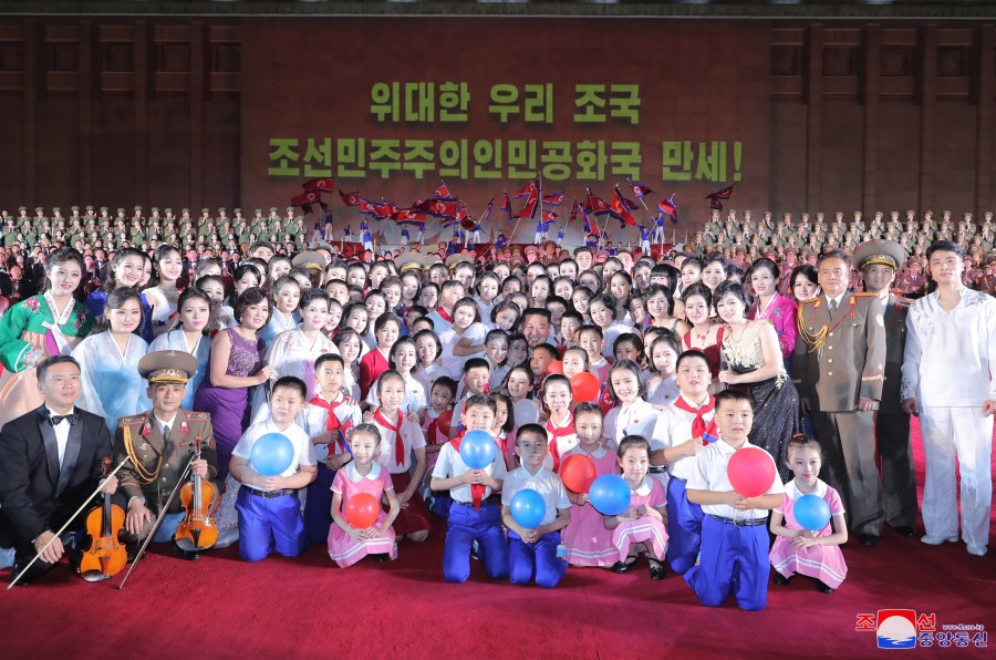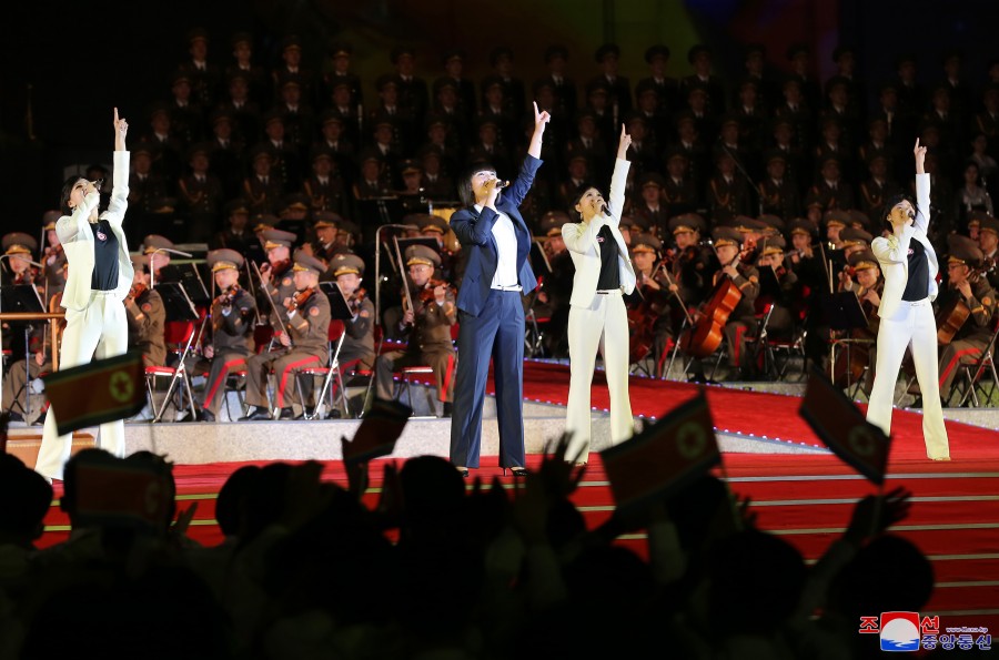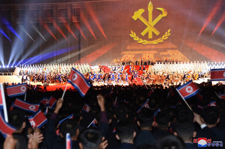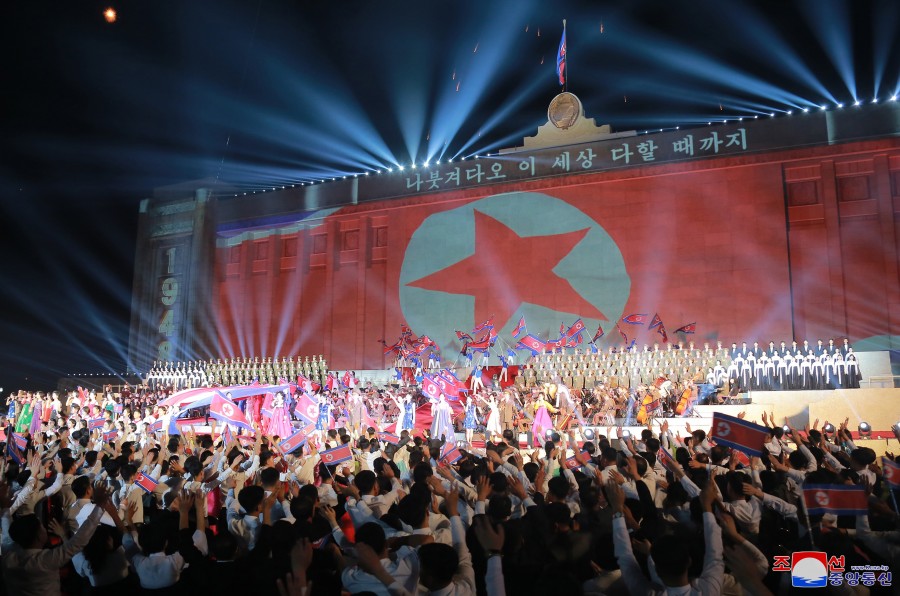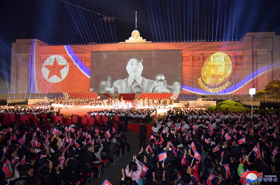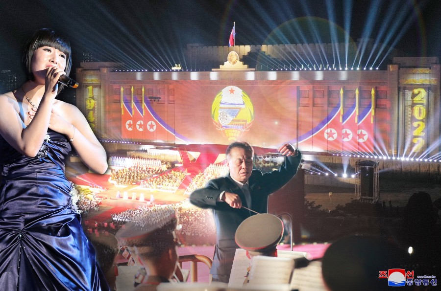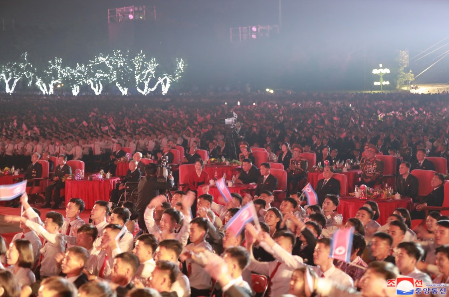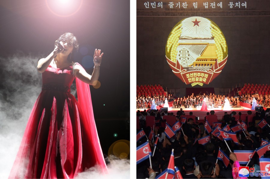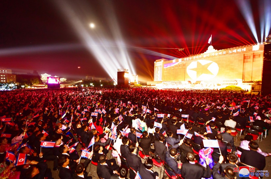 對朝鮮勞動(dòng)黨的頌歌和愛(ài)國主義主題名曲陸續登上舞臺,升華演出氣氛更加充滿(mǎn)對偉大團結、前進(jìn)和勝利傳統的無(wú)限自豪,稱(chēng)頌著(zhù)我們黨英明引導我們共和國在民族史上取得的大勝利和世紀變革的偉大,使慶?;顒?dòng)場(chǎng)所陷入巨大的激動(dòng)中。