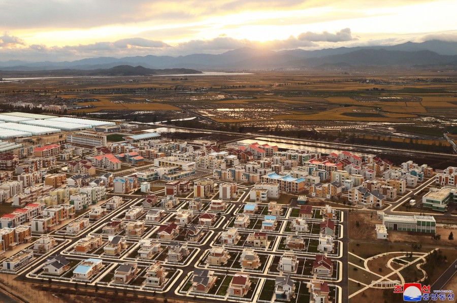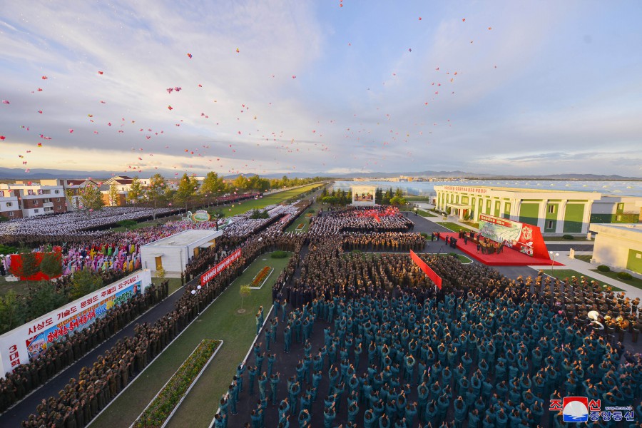 全體參加者聚集在喜慶的10月節日即將宣布完美體現偉大的黨的人民群眾第一主義政治理念和主體建筑審美思想的社會(huì )主義文化農場(chǎng)誕生的竣工典禮場(chǎng)所,場(chǎng)內激情蕩漾、一片歡騰。