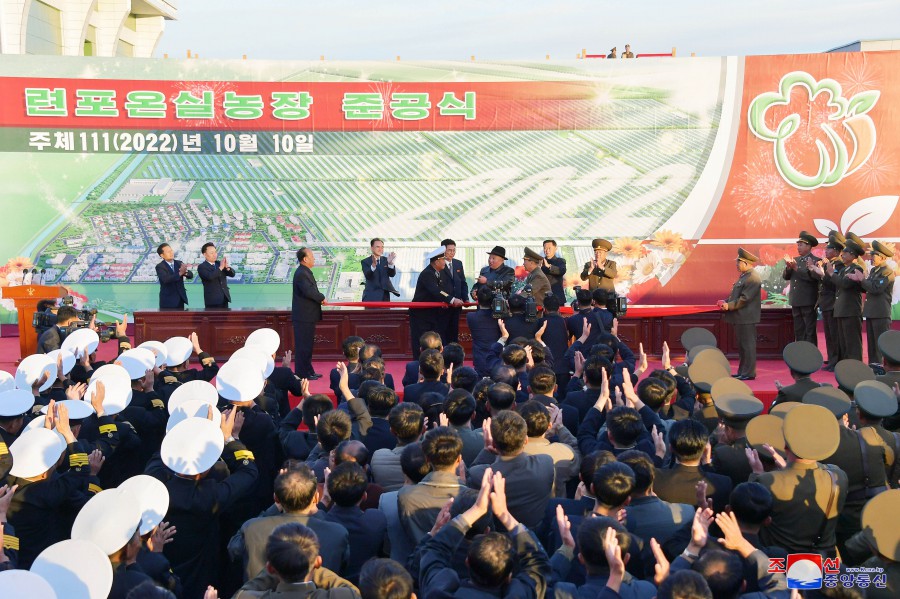 金正官、金明食、金光赫等武力機關(guān)負責干部,參加建設工程的人民軍部隊指揮成員和軍人建設者,咸鏡南道黨委員會(huì )責任書(shū)記李正南等道內干部、勞動(dòng)群眾以及連浦溫室農場(chǎng)員工參加了竣工典禮。