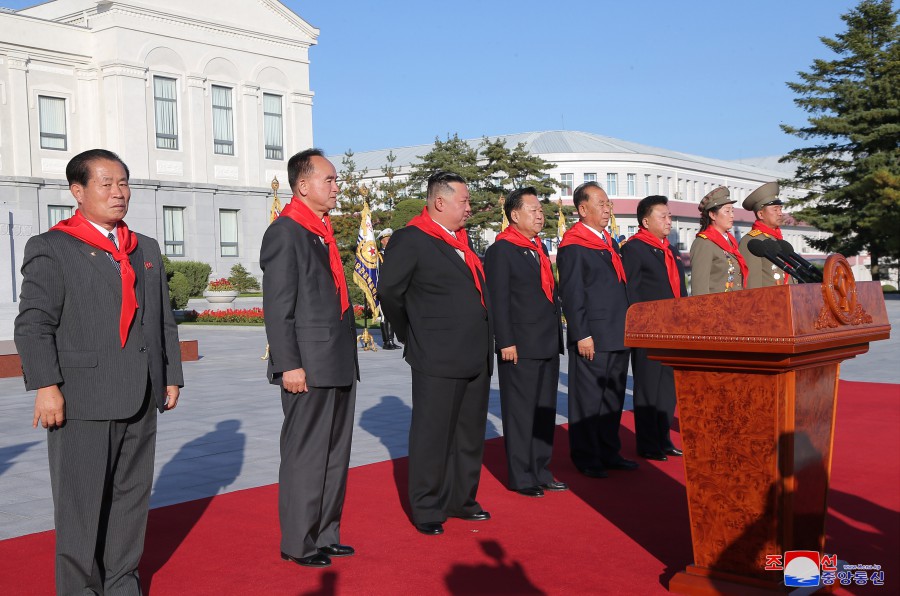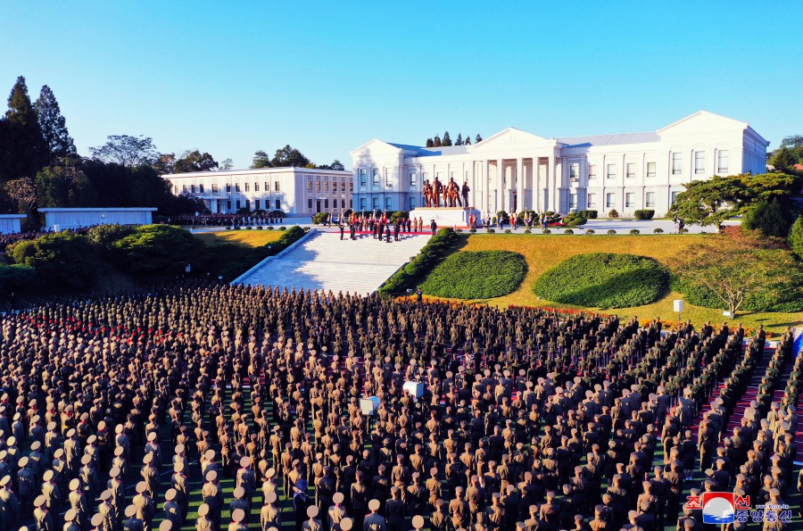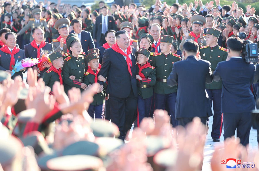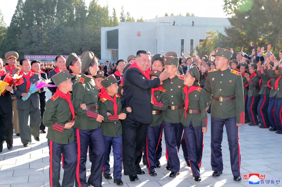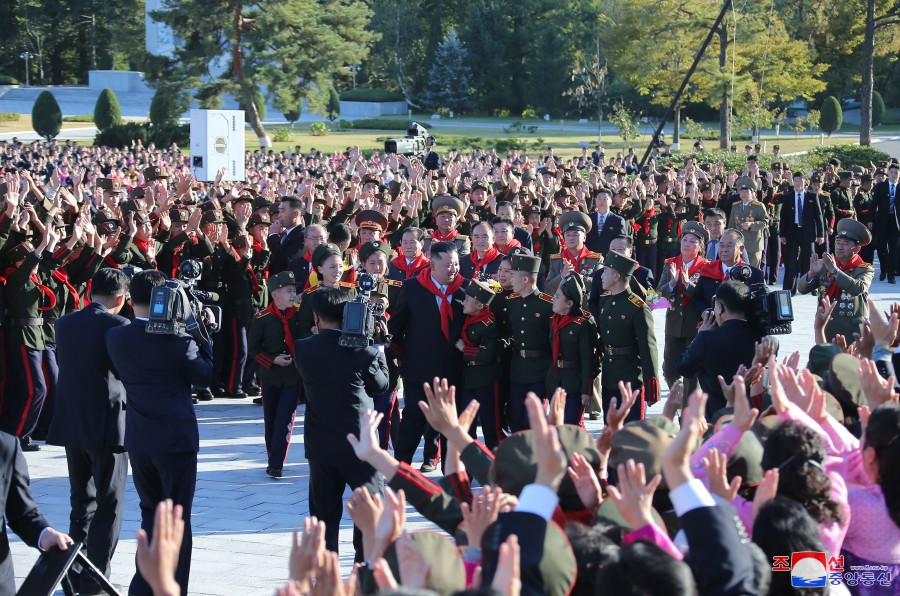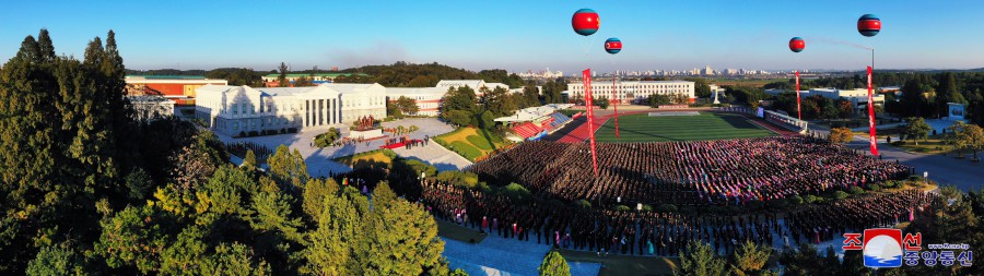 朝中社平壤10月13日電 在向起源于白頭山的主體革命血脈注入永恒生命力的偉大的黨的關(guān)懷下,跨年代和世紀作為革命烈士子女教育殿堂、我國革命骨干分子培訓基地威名遠震的萬(wàn)景臺革命學(xué)院和康盤(pán)石革命學(xué)院有意義地迎接了建院75周年華誕。 遵循卓絕偉人們的崇高的革命情義和火熱的后代觀(guān),堅定走蓬勃向上的發(fā)展歷程并培養堅定繼承萬(wàn)景臺之血統、白頭山之血統的不屈不撓的革命家、愛(ài)國忠臣之大部隊,推動(dòng)我們黨和國家以及革命武裝力量的壯大發(fā)展且奠定保證祖國和革命百年大計的堅實(shí)基礎,是萬(wàn)景臺革命學(xué)院和康盤(pán)石革命學(xué)院的75年漫長(cháng)歷史的驕傲總結。 萬(wàn)景臺革命學(xué)院、康盤(pán)石革命學(xué)院建院75周年紀念活動(dòng)10月12日在萬(wàn)景臺革命學(xué)院隆重舉行。 朝鮮勞動(dòng)黨總書(shū)記、朝鮮民主主義人民共和國國務(wù)委員長(cháng) 全體教職員、學(xué)員和畢業(yè)生能為在學(xué)院里和寤寐不忘的敬愛(ài)的元帥一起有意義地慶祝建院紀念日深感萬(wàn)分榮幸,心中充滿(mǎn)著(zhù)莫大感激和歡喜。 在歡快的迎賓曲中, 全體參加者瞻仰把全體革命烈士子女抱在溫暖懷抱里,以太陽(yáng)的熱和情關(guān)懷備至且引導他們堅定繼承主體革命血脈的偉大的導師、慈祥的元帥,爆發(fā)出了雷聲般的“萬(wàn)歲!”歡呼聲。 萬(wàn)景臺革命學(xué)院和康盤(pán)石革命學(xué)院的領(lǐng)導干部們迎接了 學(xué)員們向 朝鮮勞動(dòng)黨中央委員會(huì )政治局常務(wù)委員會(huì )委員趙甬元、崔龍海、樸正天、李炳哲參加了紀念活動(dòng)。 革命學(xué)院出身的黨和政府以及軍隊干部同萬(wàn)景臺革命學(xué)院、康盤(pán)石革命學(xué)院干部、教職員、學(xué)員和畢業(yè)生一起參加了紀念活動(dòng)。 敬愛(ài)的 全體參加者瞻仰為萬(wàn)景臺革命學(xué)院和康盤(pán)石革命學(xué)院能夠永葆并發(fā)揚光大作為朝鮮勞動(dòng)黨的學(xué)院的性質(zhì)和本色且可靠保證民族萬(wàn)代、革命萬(wàn)代尊嚴和繁榮提供不朽指針的 革命學(xué)院全體學(xué)員進(jìn)行了紀念萬(wàn)景臺革命學(xué)院和康盤(pán)石革命學(xué)院建院75周年列隊行進(jìn)。 敬愛(ài)的 合影結束時(shí),再次爆發(fā)出如雷般的“萬(wàn)歲!”歡呼聲,禮花騰空綻放,“ 萬(wàn)景臺革命學(xué)院、康盤(pán)石革命學(xué)院75周年紀念活動(dòng)成為了清楚地顯示全體繼承者要把偉大的