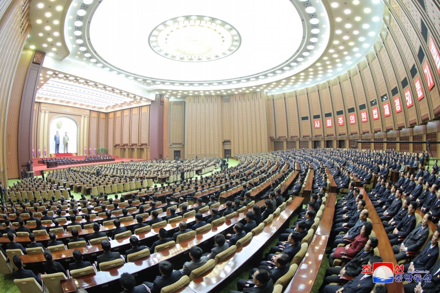 朝鮮勞動(dòng)黨中央委員會(huì )政治局常務(wù)委員會(huì )委員、朝鮮民主主義人民共和國國務(wù)委員會(huì )第一副委員長(cháng)、最高人民會(huì )議常任委員會(huì )委員長(cháng)崔龍海做了《要把主體的社會(huì )主義憲法作為唯一武器狠抓,強力推動(dòng)國家法律建設和全面發(fā)展》的報告。
