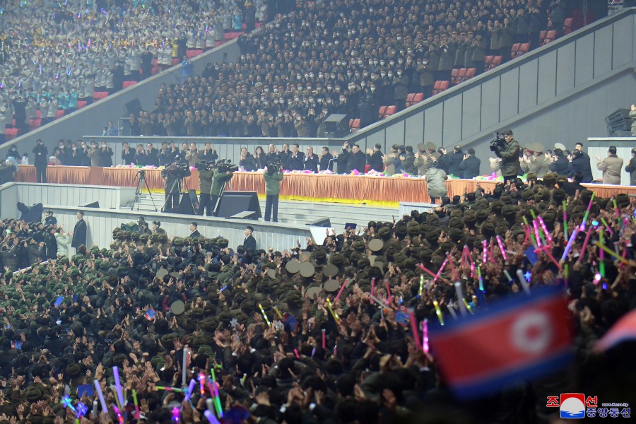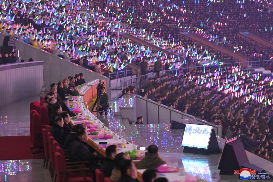 黨的八屆六中全會(huì )參加者和朝鮮少年團第九次代表大會(huì )參加者以及首都市民觀(guān)看了大型演出。
