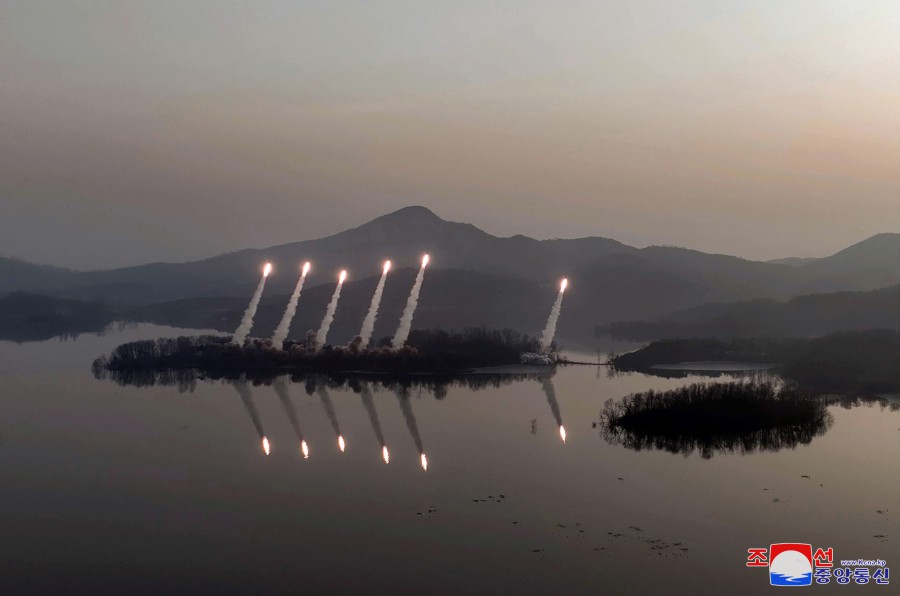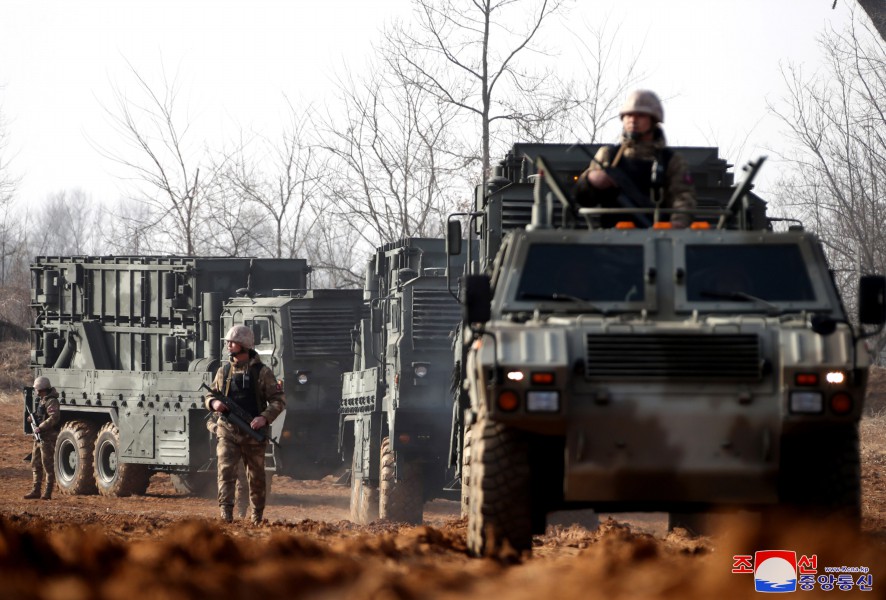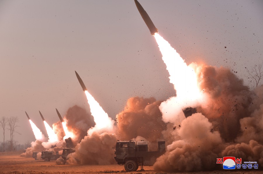 朝中社平壤3月10日電 朝鮮勞動(dòng)黨總書(shū)記、朝鮮民主主義人民共和國國務(wù)委員長(cháng)金正恩同志3月9日對承擔朝鮮人民軍西部前線(xiàn)重要作戰任務(wù)的火星炮兵部隊進(jìn)行視察后,觀(guān)摩了火力襲擊訓練。