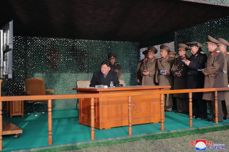 朝鮮勞動(dòng)黨中央委員會(huì )主要干部和朝鮮人民軍大聯(lián)合部隊指揮官觀(guān)摩了火力襲擊訓練。