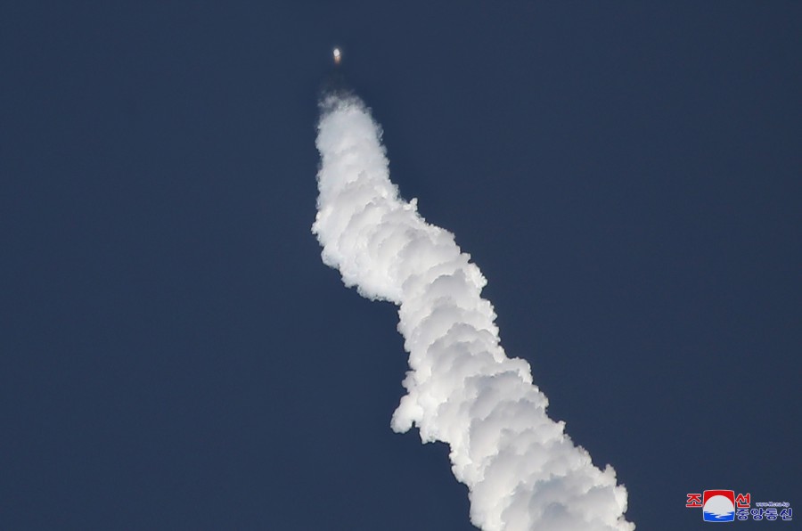 “火星炮-17”型洲際彈道導彈在平壤國際機場(chǎng)發(fā)射,上升高度為6045公里,飛行距離達1000.2公里,飛行時(shí)間為4151秒,最后準確落在朝鮮東海公海的目標水域。