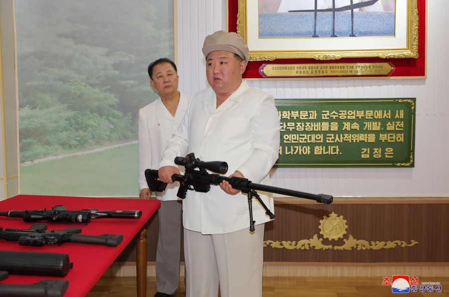 敬愛(ài)的金正恩同志了解了新系列狙擊武器生產(chǎn)情況。
