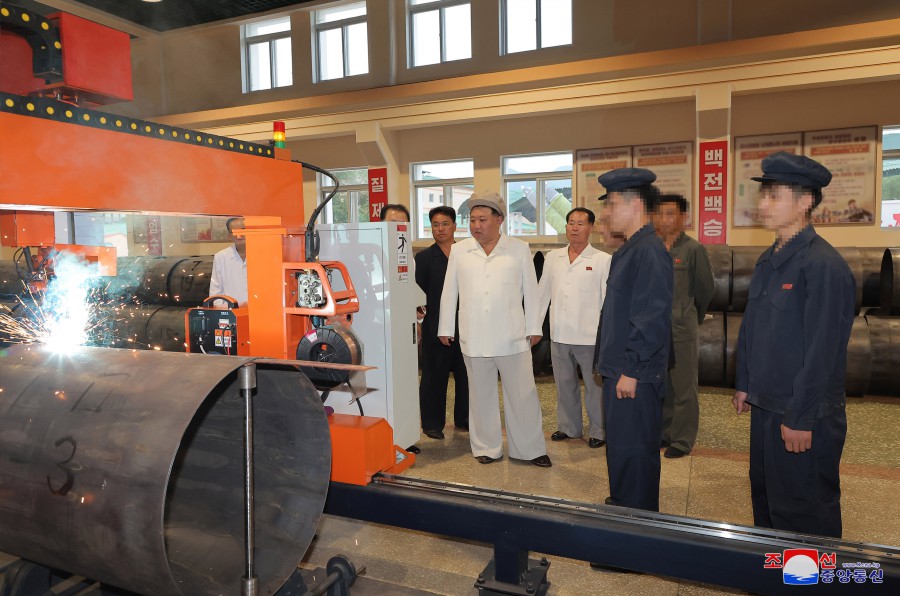 敬愛(ài)的金正恩同志來(lái)到超大型大口徑火箭炮彈廠(chǎng)進(jìn)行視察,具體了解了近期取得的技術(shù)及生產(chǎn)工序現代化進(jìn)展情況和現行生產(chǎn)情況。