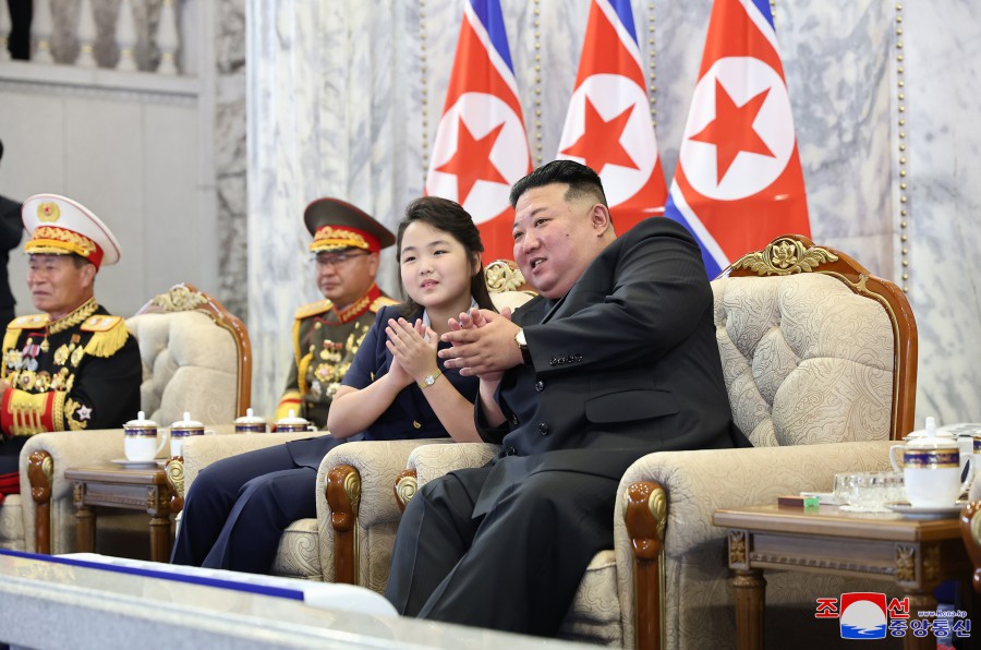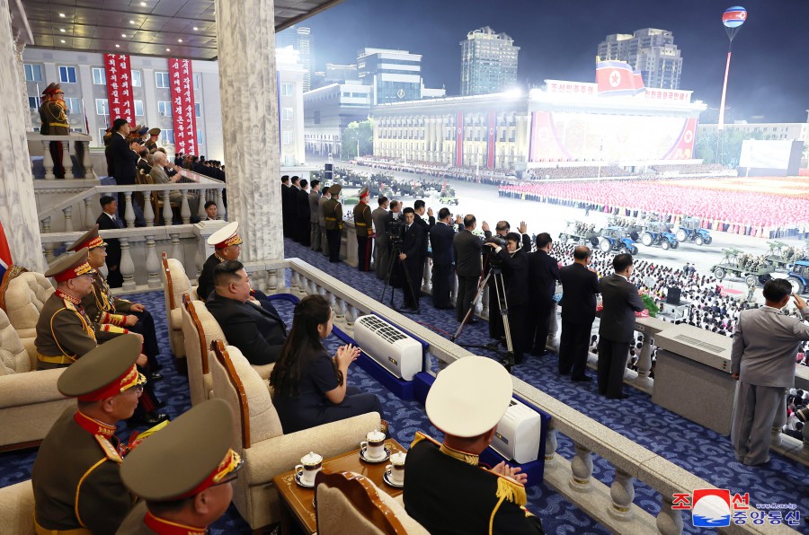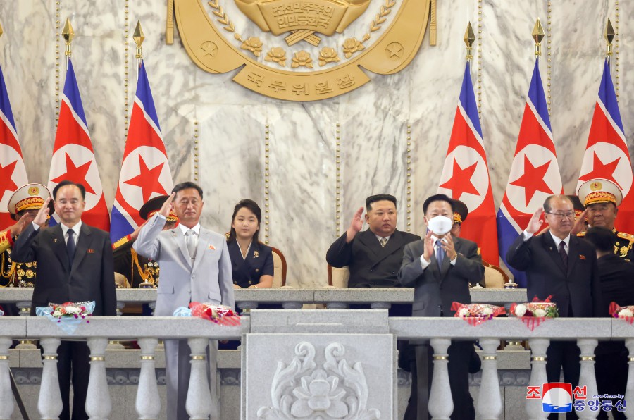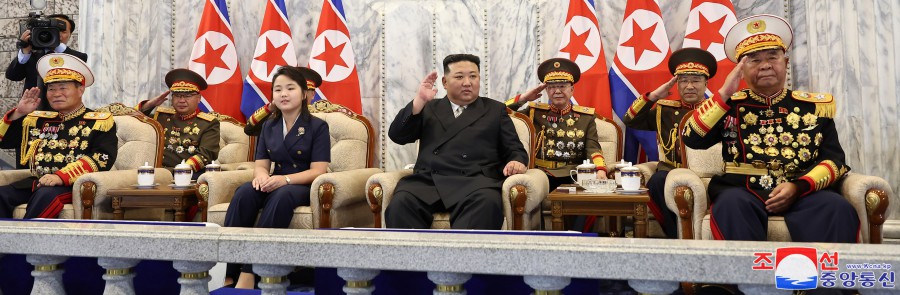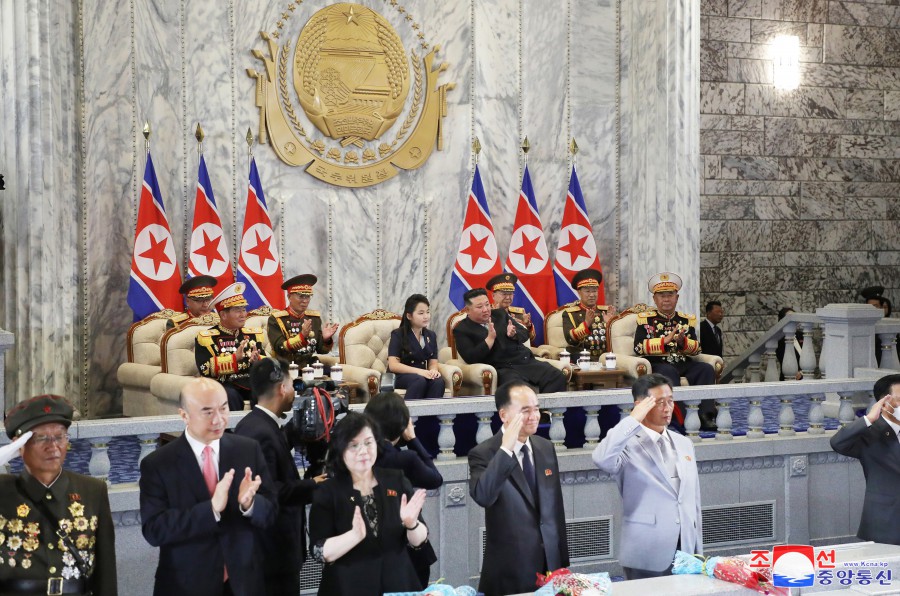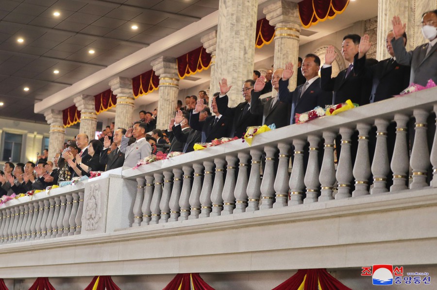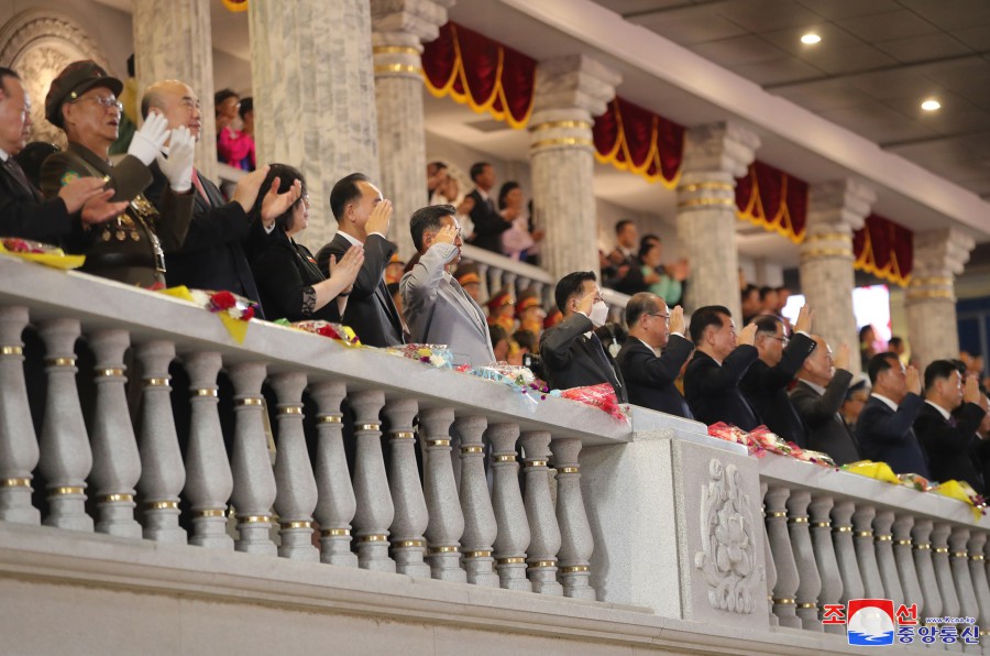 朝鮮民主主義人民共和國成立75周年慶?;顒?dòng)參加者在招待席就座。