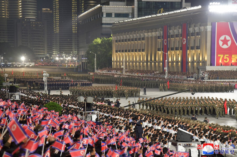 慶祝朝鮮民主主義人民共和國成立75周年民間防衛武裝力量閱兵式向全世界大力顯示同心同德緊密團結在敬愛(ài)的