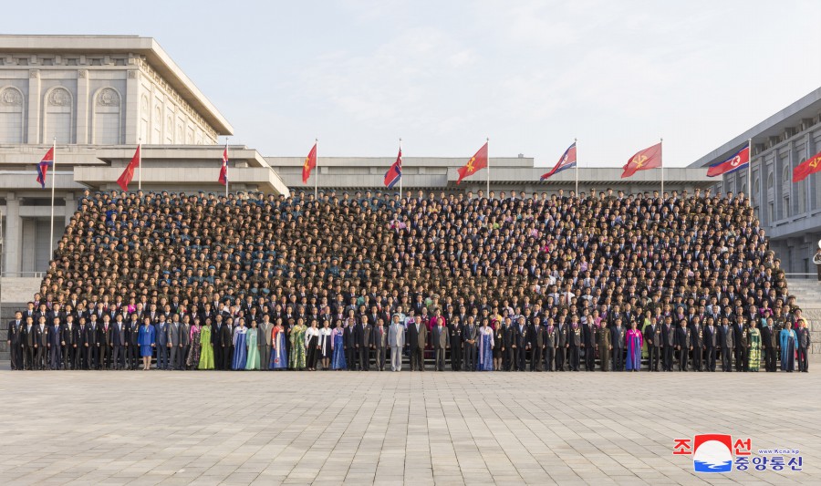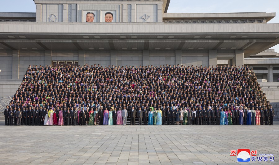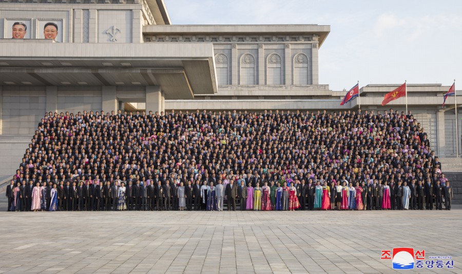 全體參加者參加在敬愛(ài)的金正恩同志的出席下隆重舉行的共和國成立75周年慶?;顒?dòng),深深體會(huì )了偉大的我們國家的堅強氣概和無(wú)窮燦爛未來(lái)。在此巨大歡喜之中,在主體的最高圣地——錦繡山太陽(yáng)宮將同夢(mèng)寐想見(jiàn)的金正恩同志合影留念的他們感激不盡、喜悅無(wú)比。