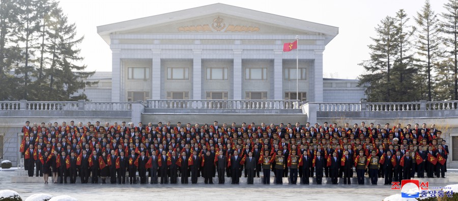 當天,敬愛(ài)的金正恩同志同黨中央領(lǐng)導機關(guān)成員合影留念。(完)