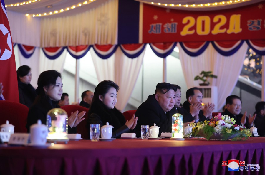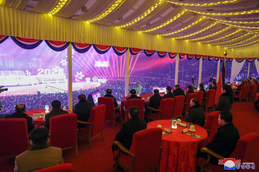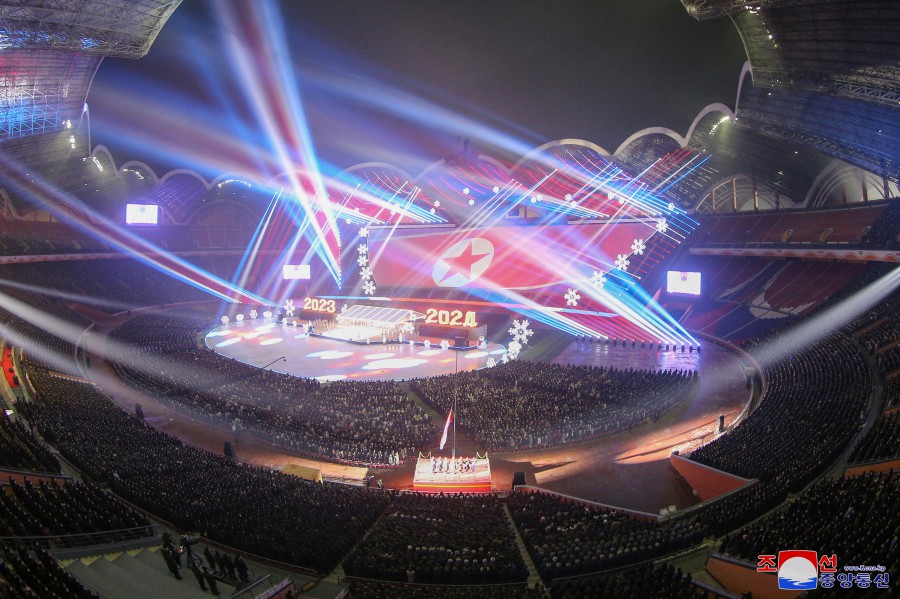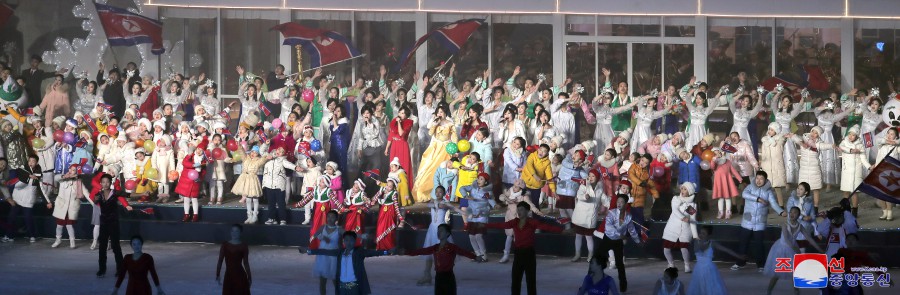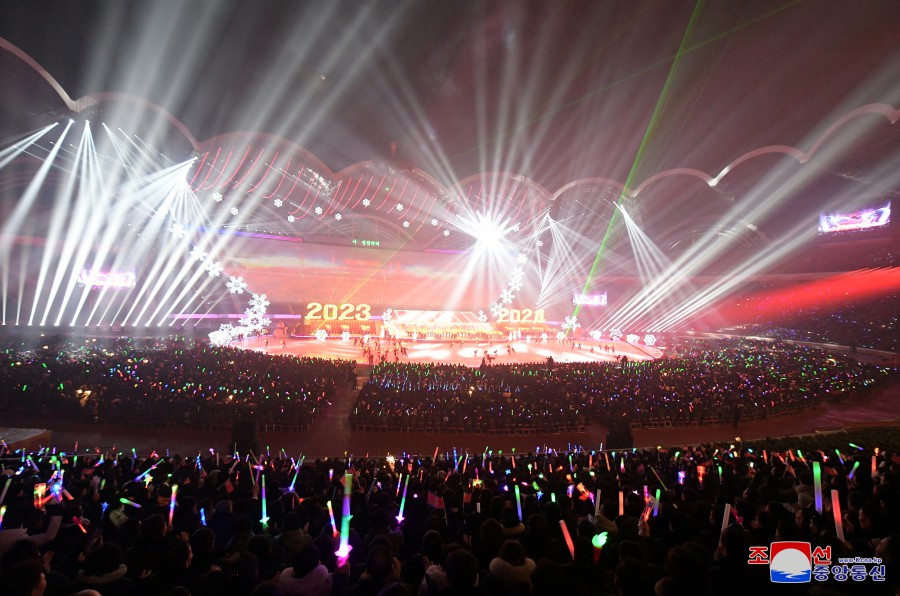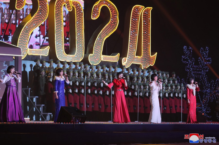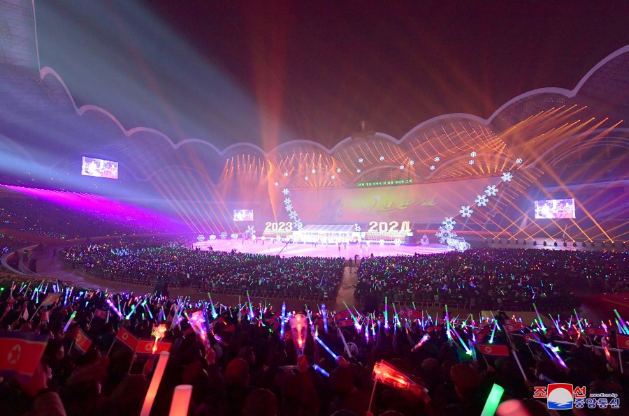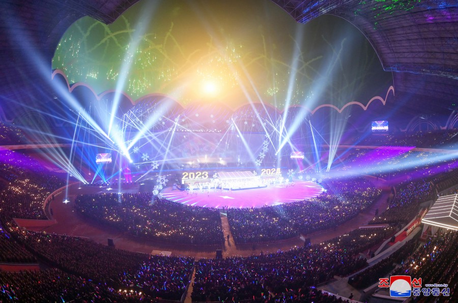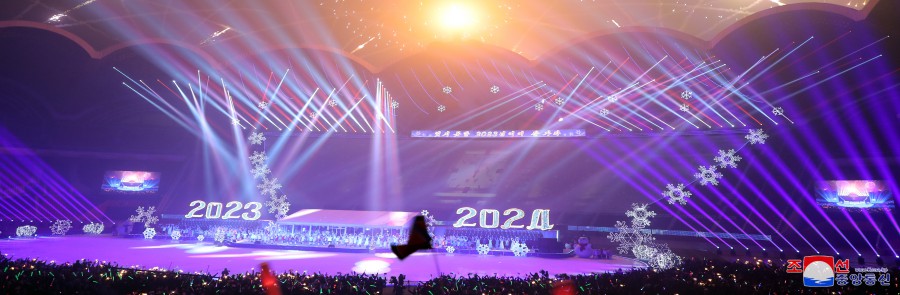在千萬(wàn)人民滿(mǎn)懷信心和要提前爭取新勝利的非凡的奮斗精神迎接新年的激情充滿(mǎn)全國的背景下,2024年新年慶祝大演出在首都平壤的五一體育場(chǎng)隆重舉行。