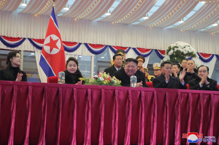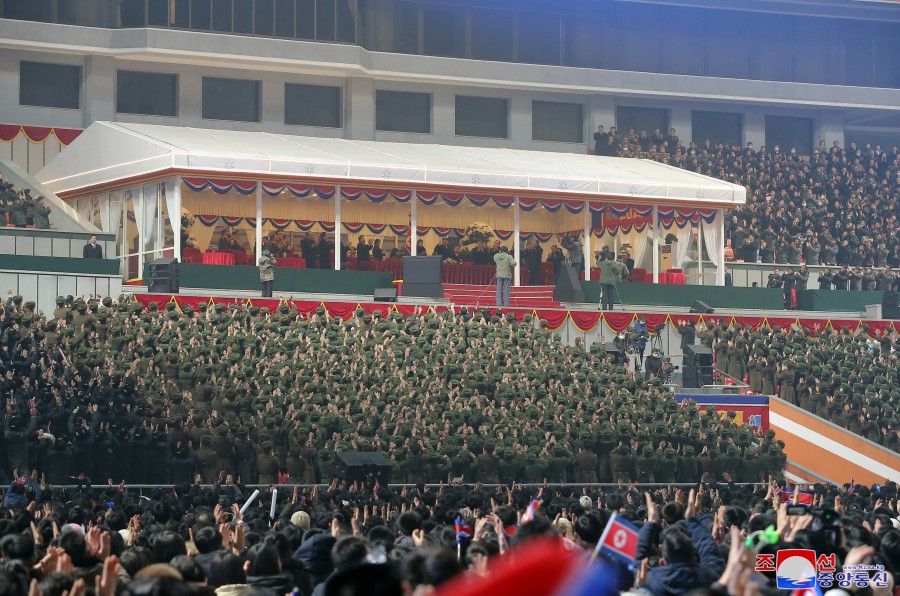 全體參加者瞻仰著(zhù)以卓越的領(lǐng)導和政治實(shí)力把共和國的國力和威儀提升到世紀巔峰,展現靠自存、自立、自衛實(shí)現富國強兵事業(yè)的蓬勃發(fā)展新時(shí)代的主體朝鮮的強大和英雄性的象征、偉大尊嚴和輝煌榮譽(yù)的神圣代表者——敬愛(ài)的