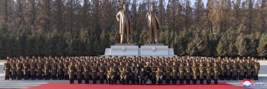 朝鮮人民軍軍官們向金正恩同志獻花。