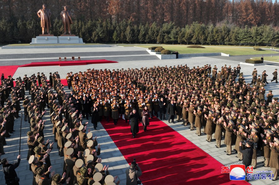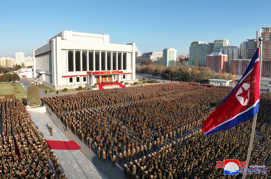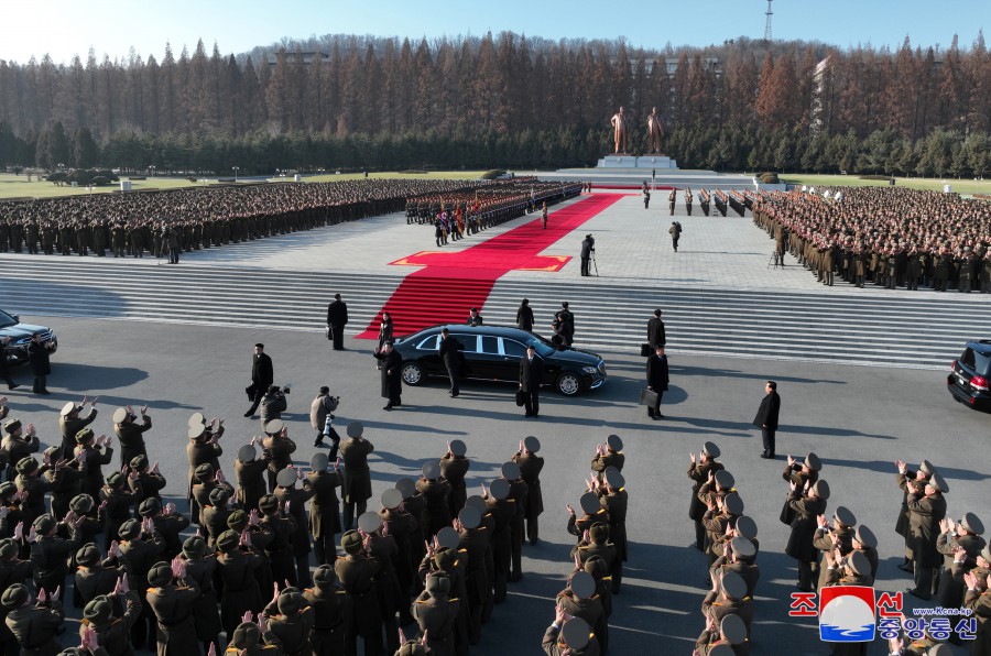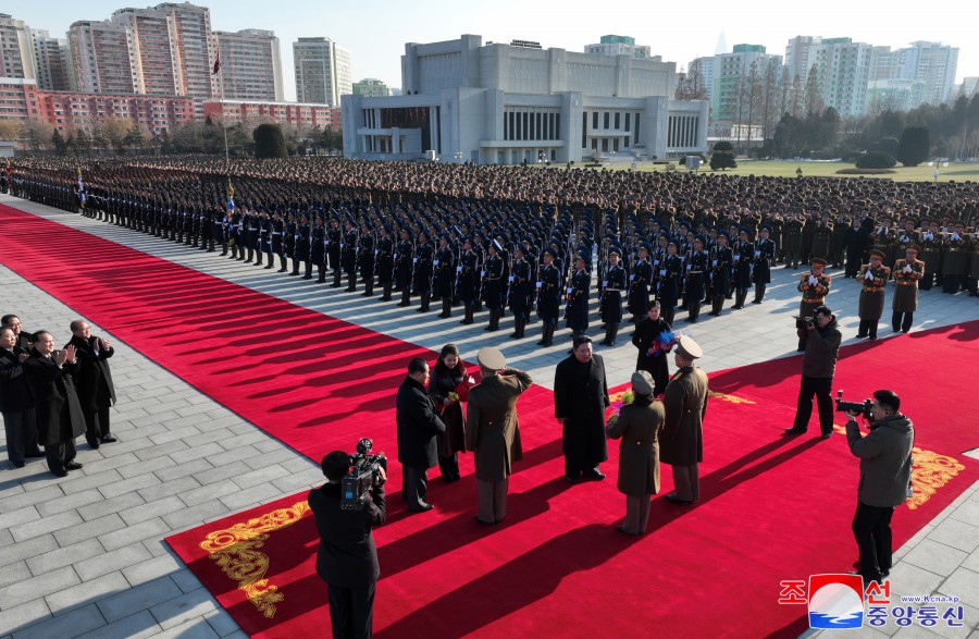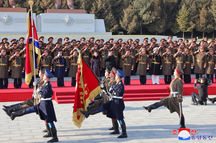 朝鮮人民軍儀仗隊舉行了列隊行進(jìn)。