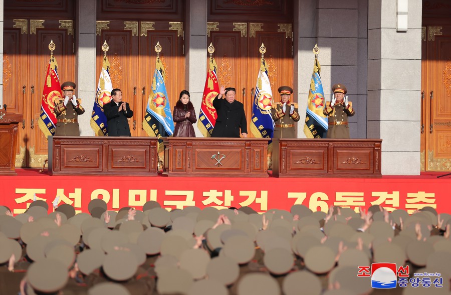 金正恩同志向朝鮮人民軍從誕生初期到今天的76年來(lái)忠誠肩負時(shí)代和歷史所賦予的神圣使命,堅決保衛祖國和人民的安寧和權益、我們黨的思想和事業(yè),主導富國強兵偉大轉變的英雄發(fā)展歷程表示了崇高敬意。