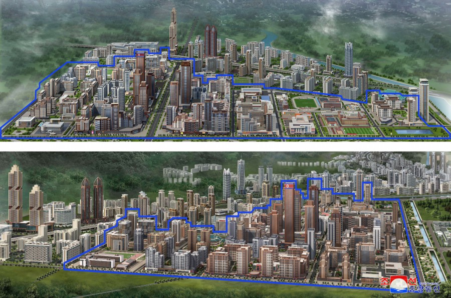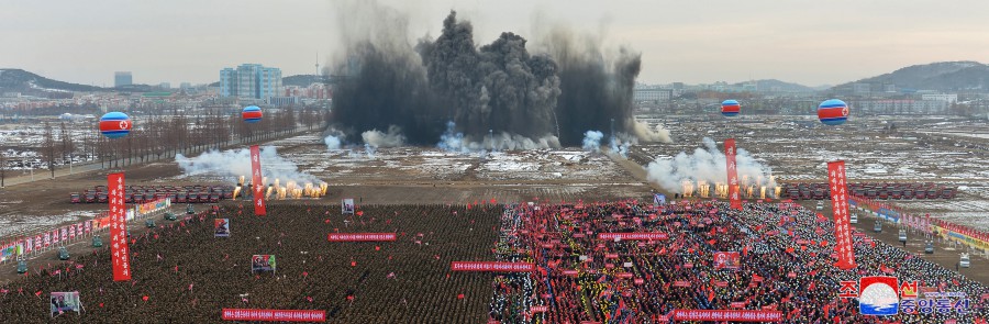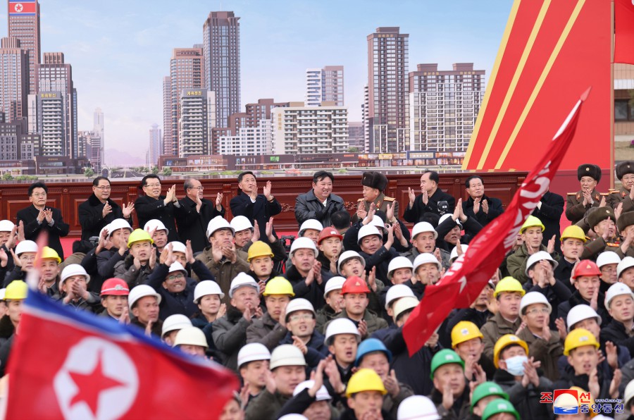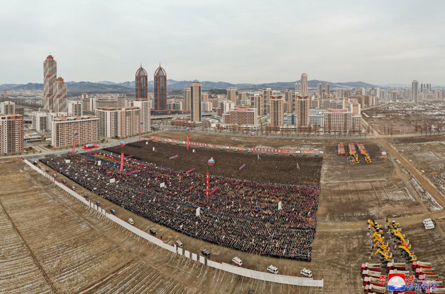 2024年度平壤市1萬(wàn)套住宅建設工程——第三階段建設奠基典禮2月23日在和盛地區舉行。在這里出色地體現我們黨和國家特有的主體的人民性質(zhì)、朝鮮式固有的風(fēng)格和特色、現代建筑向往發(fā)展趨勢的新大街每年拔地而起,展現翻天覆地的大變化。