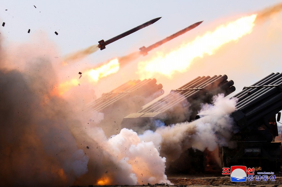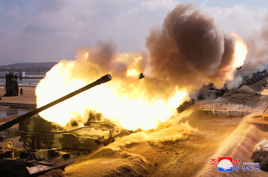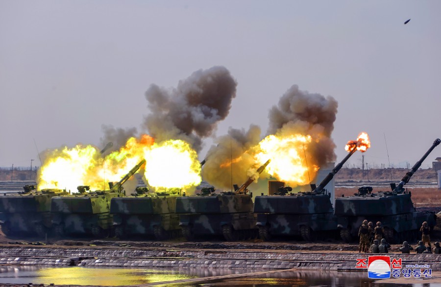 朝鮮勞動(dòng)黨總書(shū)記、朝鮮民主主義人民共和國國務(wù)委員長(cháng)金正恩同志3月7日指導了朝鮮人民軍各大聯(lián)合部隊炮擊訓練。