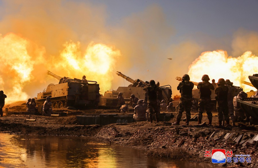 敬愛(ài)的金正恩同志強調,要進(jìn)一步掀起全軍所有炮兵的訓練熱潮、競賽熱潮,把他們培養成為炮兵戰的能手、以一當百的神炮手,以使他們和今天訓練一樣為將在實(shí)戰中也迅速正確執行自己所肩負的任何戰斗任務(wù)做好準備。