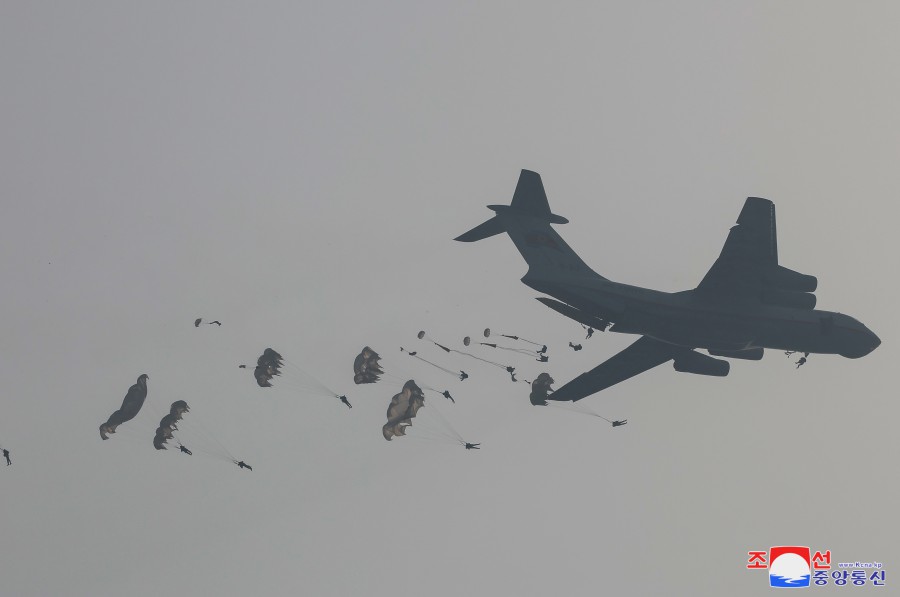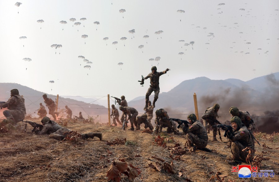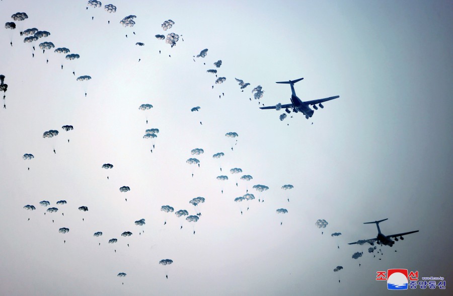 朝中社平壤3月16日電 朝鮮勞動(dòng)黨總書(shū)記、朝鮮民主主義人民共和國國務(wù)委員長(cháng)金正恩同志3月15日指導了朝鮮人民軍空降部隊訓練。