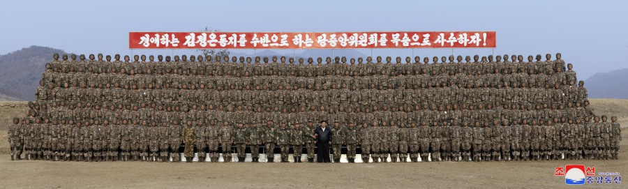 金正恩同志勉勵思想和信念之威力強大、具有所向無(wú)敵的自衛力量的我們軍隊永遠取勝,并與圓滿(mǎn)進(jìn)行戰斗訓練的空降部隊全體戰斗員合影留念。