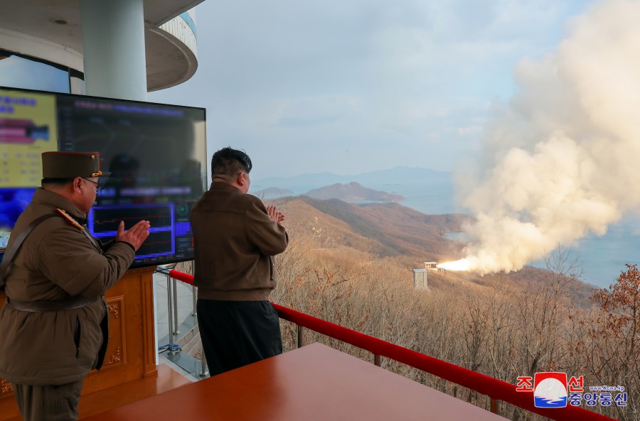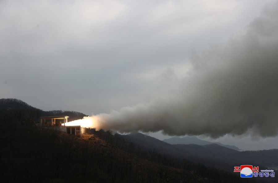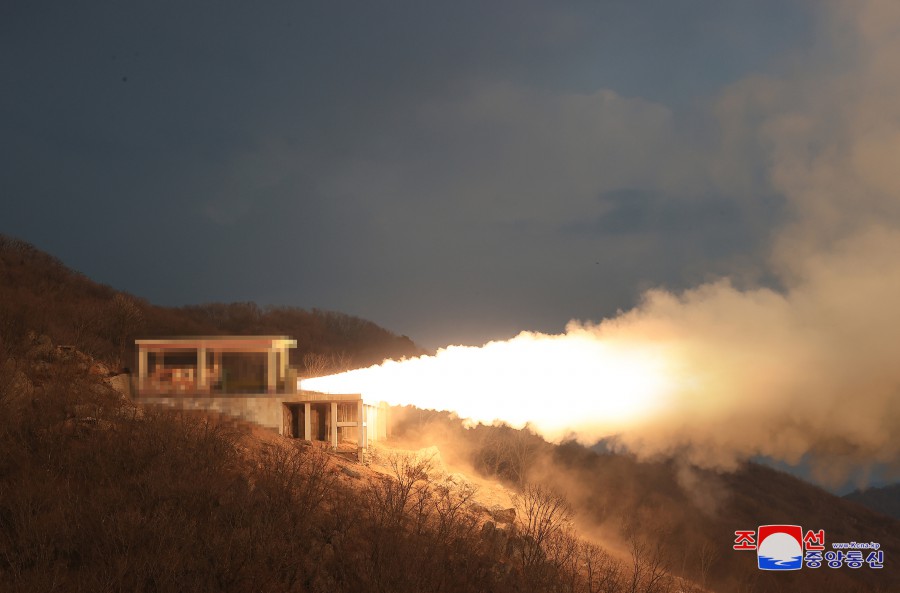 朝鮮民主主義人民共和國導彈總局和所屬發(fā)動(dòng)機研究所3月19日上午和下午在西海衛星發(fā)射場(chǎng)按新型武器系統開(kāi)發(fā)日程進(jìn)行了將搭載于中遠程高超音速導彈的多級固體燃料發(fā)動(dòng)機地上點(diǎn)火試驗。